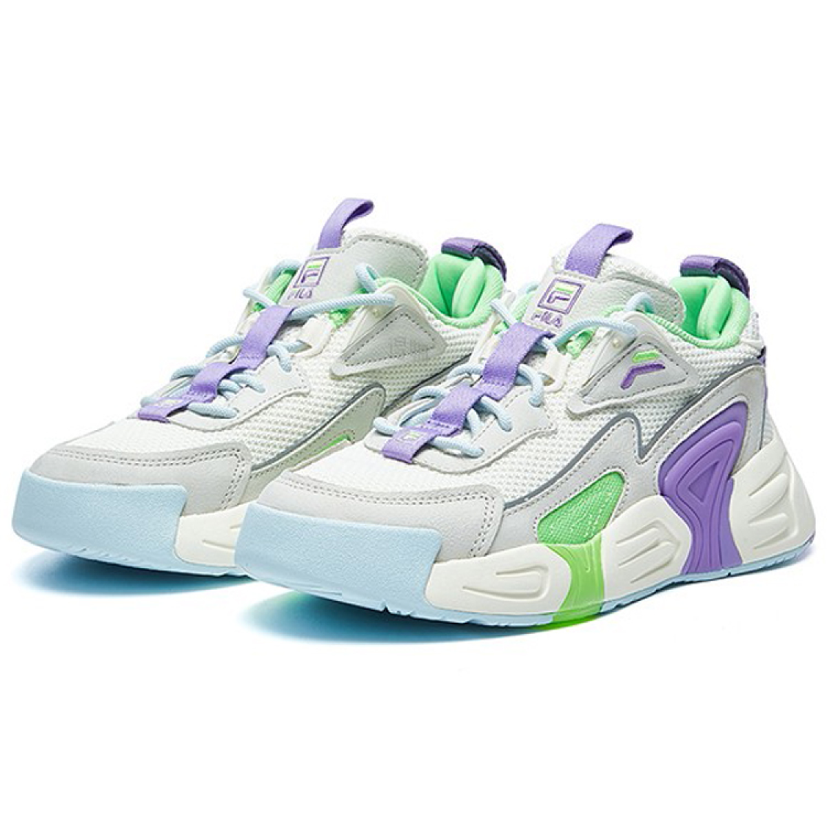 FILA Swarm Swirl Сетка Текстиль Низкие Винтажные Баскетбольные Кроссовки Женские Фиолетовые Белые Серые
